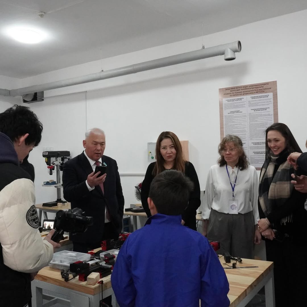 28 қараша күні «Қазақстан халқына» қоғамдық қорының делегациясы техникалық шығармашылық мектебі - «Балалар технопаркіне» барып, Қарағанды облысының қосымша білім беру ұйымдарында STEM-білім беруді енгізу жобасының іске асырылу барысымен танысты.