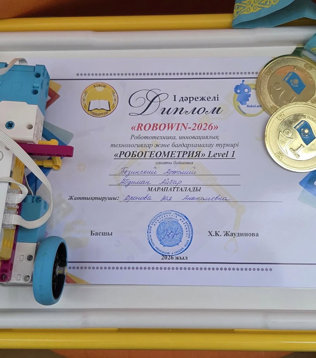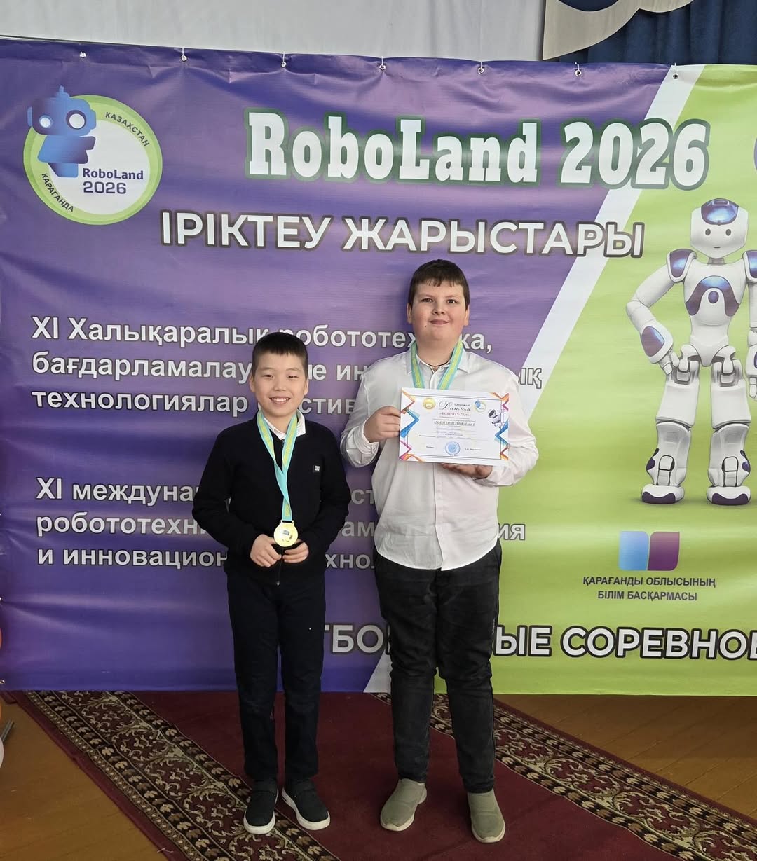 Техникалық шығармашылық мектебінің тәрбиеленушілері Абдиман Айбар мен Безинский Артемийді, сондай-ақ RoboKids зертханасының жетекшісі Зоя Анатольевна Дронованы «ROBOWIN-2026» робототехника, инновациялық технологиялар және бағдарламалау бойынша іріктеу турындағы жеңісімен құттықтаймыз!