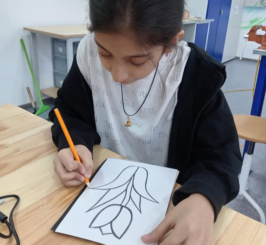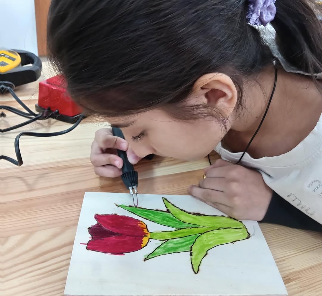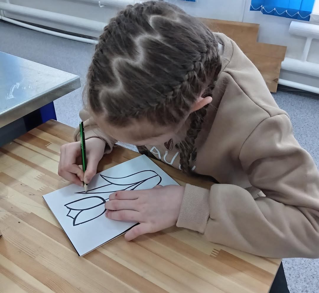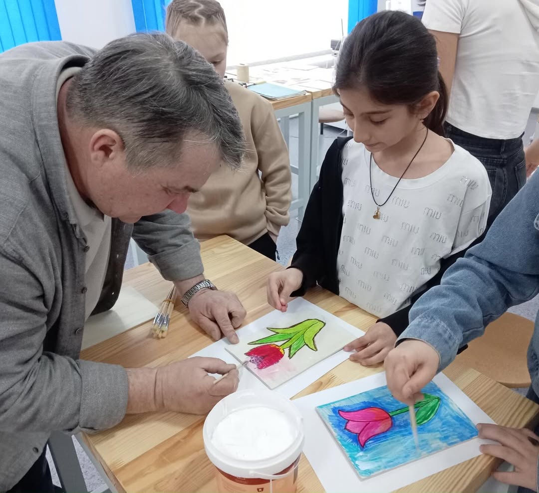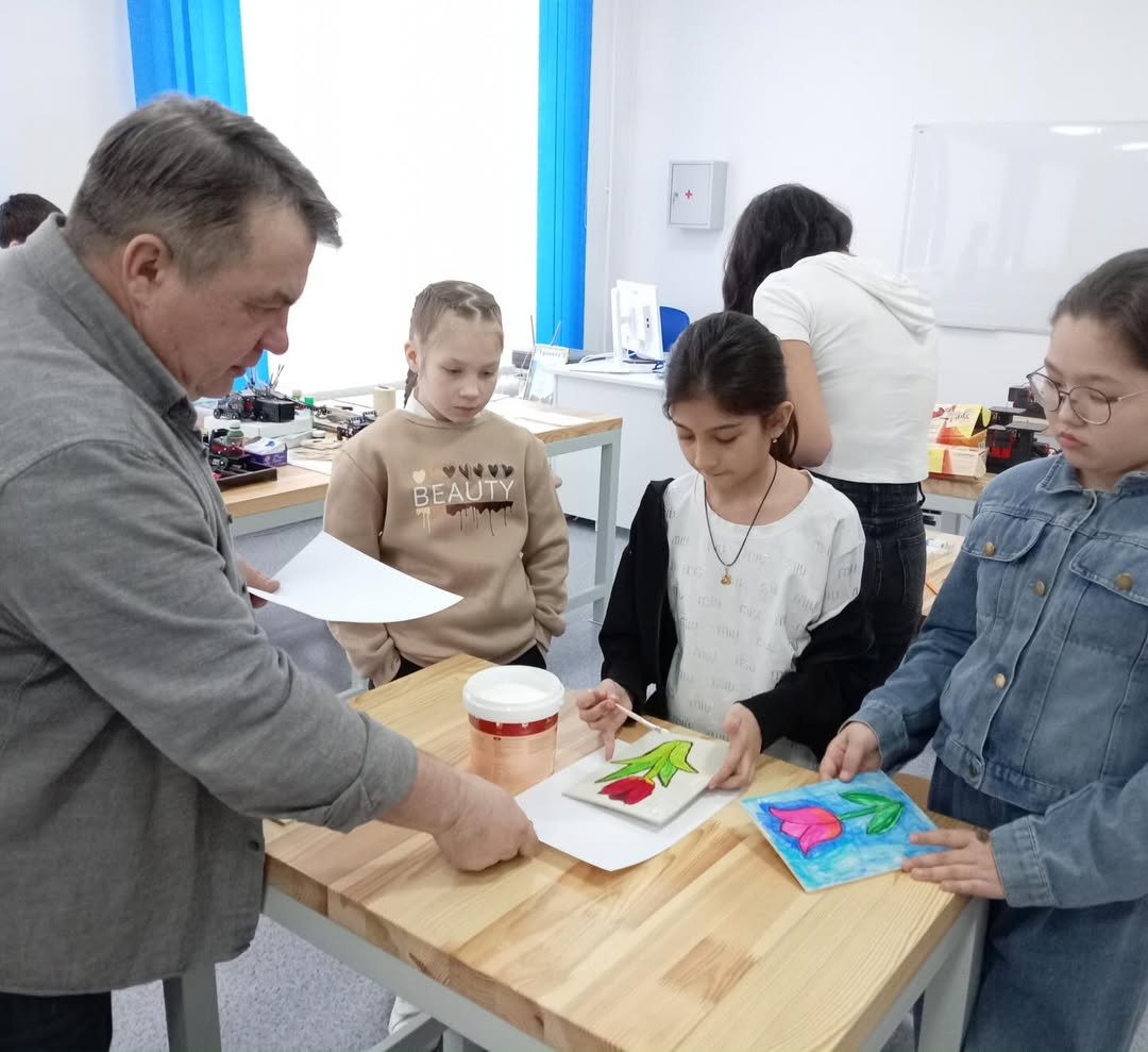 Қонақжайлық айлығы аясында «Ажур» шығармашылық шеберханасының тәрбиеленушілері бастапқы техникалық модельдеу үйірмесінде ағашқа күйдіру өнерімен танысты. Константин Николаевич Амелиннің жетекшілігімен олар өз жұмыстарында нәзік қызғалдақтар мен дала бәйшешектерін бейнеледі. Қызған құралмен жүргізілген әрбір сызық біртіндеп көктемнің, сұлулық пен жаңарудың символына айналған әсем гүлге ұласты.