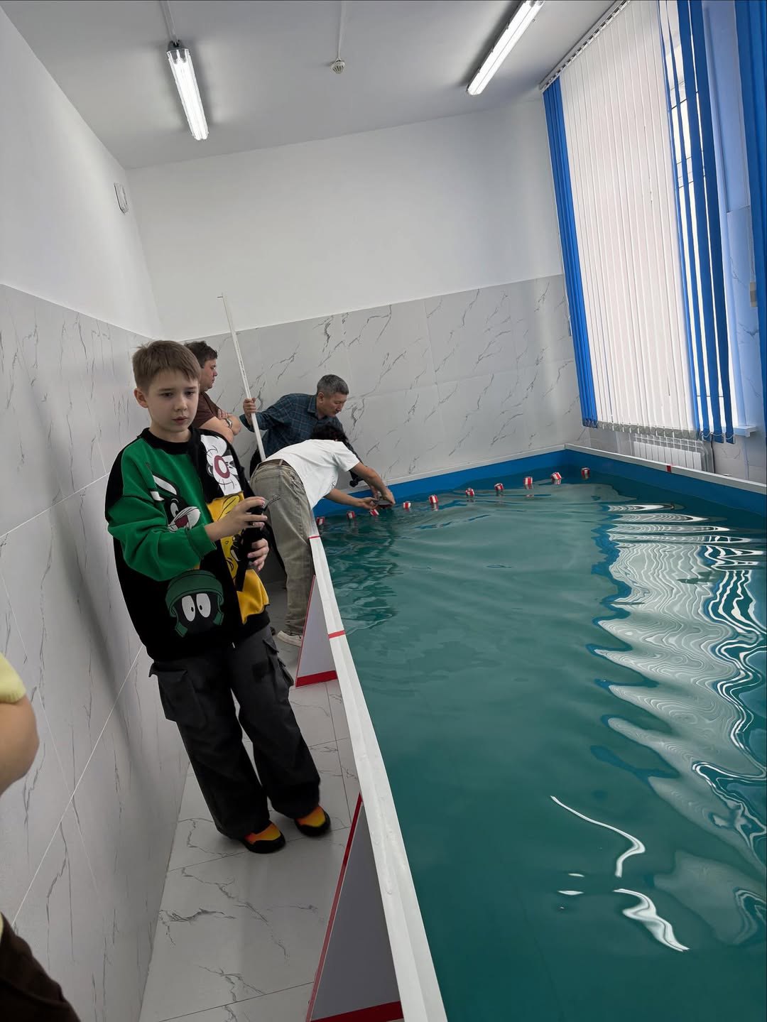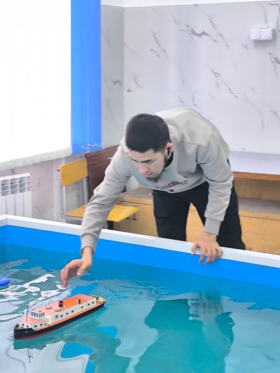 Благодаря поддержке фонда «Қазақстан халқына» в нашей школе есть собственный бассейн, что позволяет проводить старты моделей малого масштаба и создавать все условия для развития юных судомоделистов.